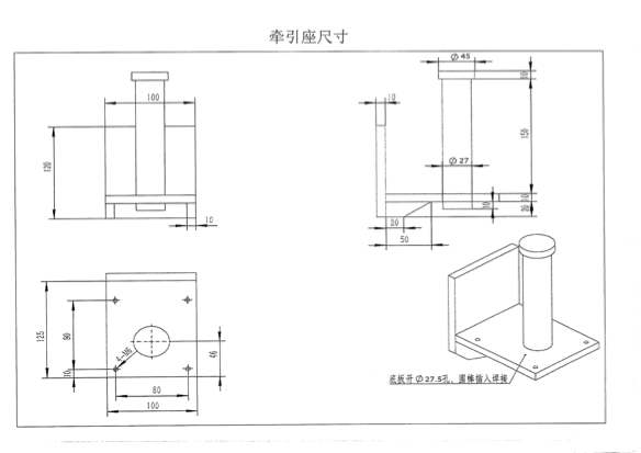 具體到臺車連接棒和牽引座部位的圖紙,模糊化處理: